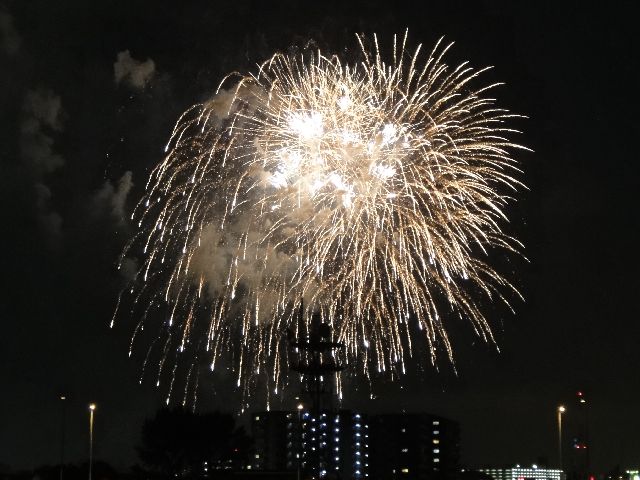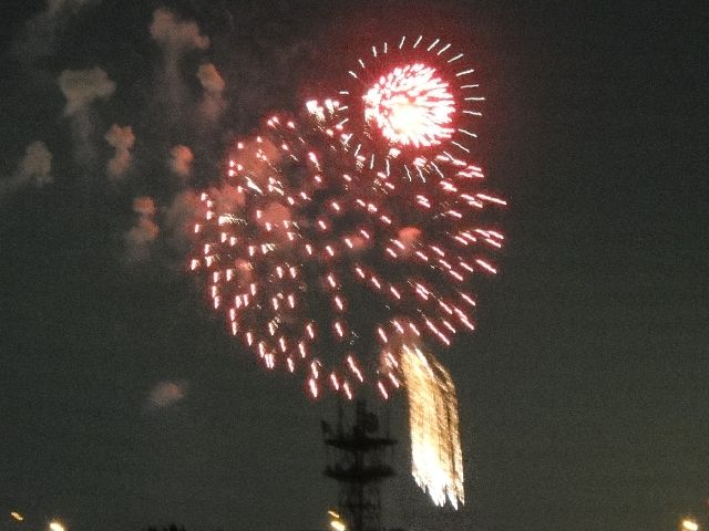 鶴見川花火大会 お出かけ 2010.08.21(土) 鶴見川花火大会を見に行ってきました。今年最後の花火観賞です。河川敷に4人で座ってのんびり鑑賞しました。規模の小さい花火大会ですが、今年これまでに見た花火大会では見なかった花火もあり、それなりに楽しめました。《とり》と《いぬ》はニコちゃんマークの花火が上がると大喜びでした。