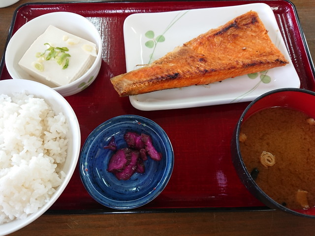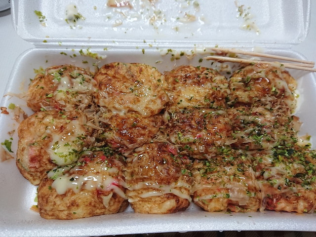 《たつ》は今日から大阪の実家に帰ります。天気が良く富士山がきれいに見えました。昼ごはんはサーモンのハラミの定食、夜ごはんはたこ焼きです。