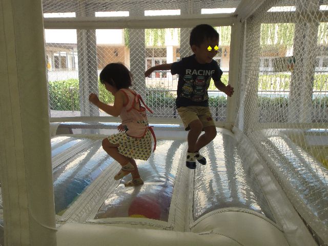 おおはしゃぎ 子育て 2010.08.31(火) 午後からピアノ教室があるので、午前中は暑さでバテないようにショッピングモールの有料コーナーで1時間ほど遊ばせました。10時過ぎに行ったので、とても空いていてかなり自由に遊べました。10時半くらいになると、少しずつ人も増えてきて帰る頃には満員になっていました。