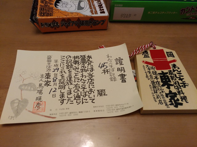おかえり 中学校 2017.08.14(月) 昨夜遅くに《とり》が帰宅しました。みんなで打ち上げをしていたようです。お土産も買ってきてくれました。わんこそばも沢山たべたようです。途中1万円もする切符をエスカレーターの隙間で取れない場所に落としてしまい、高校生達が割り勘をして新しい切符を買ってくれたようです。食事もおごってくれたり、皆さん親切です。