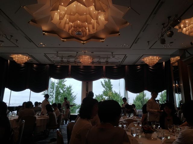 ランチ会 中学校 2017.09.01(金) 中学の地区のランチ会に出席しました。今回は全学年なのでホテルのとても大きい披露宴会場です。校長先生の挨拶が終わり乾杯をすると、カーテンが一斉に開いて海が一望できます。ワインを飲みながら先生や卒業生の楽しいお話を聞くことができました。《とり》の部活の部長さんのお母さまにも挨拶ができました。役員さんたちは美容院で髪をセットして素敵なドレスを着ていてとてもはなやかでした。