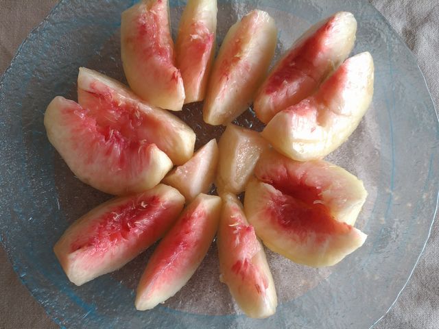 桃が熟れたので食べました。甘くて美味しいです。