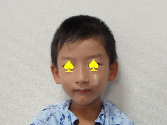 《とり》が顔にキズを作って帰ってきました。女の子の爪が当たって2cmほど縦にえぐれていて、とても痛そうです。とりあえずキズパワーバンドをしています。爪が伸びていると凶器になるんで危ないですね。