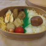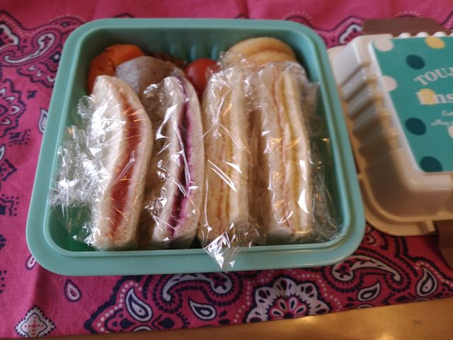 《いぬ》が芸術鑑賞なのでお弁当です。本人のリクエストでサンドイッチと筑前煮です。