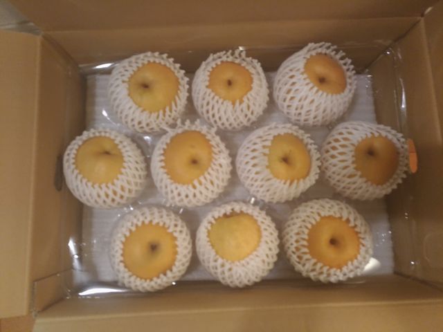 ふるさと納税のお礼の梨が届きました。甘くて美味しいです。