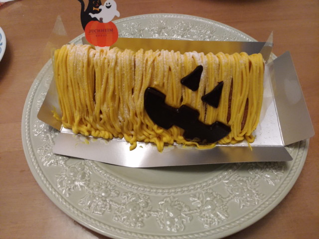 ハロウィンなのでケーキを買って帰りました。かぼちゃのクリームが美味しいです。