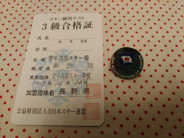 夜に《とり》がスキーから帰宅しました。お土産とバッジテストを受けて三級の合格証も持って帰ってきました。コーチは長野オリンピックで活躍をした方らしく贅沢な感じです。最終日は全てのコースをみんなで滑って楽しかったようです。