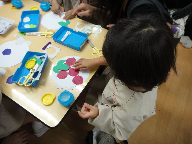 参観日 幼稚園 2010.10.08(金) 《いぬ》の参観日でした。紙でぶどうを作ったり手遊びなどをしました。年少さんはみんな一生懸命で素直でかわいいです。終わってからは役員のママたちと打合せ兼ランチへ。結局しゃべってしまい、2学期の公園遊びや飲み会のことについての詳細は全く決まりませんでした。 夜はビストロでハンバーグを焼きました。一緒に野菜も焼けるし、フライパンと違って火加減を見る必要もないので楽チンだそうです。《たつ》が飲み会だったので3人で山分けして食べてしまいました。