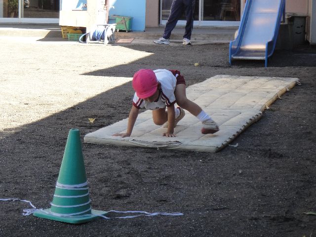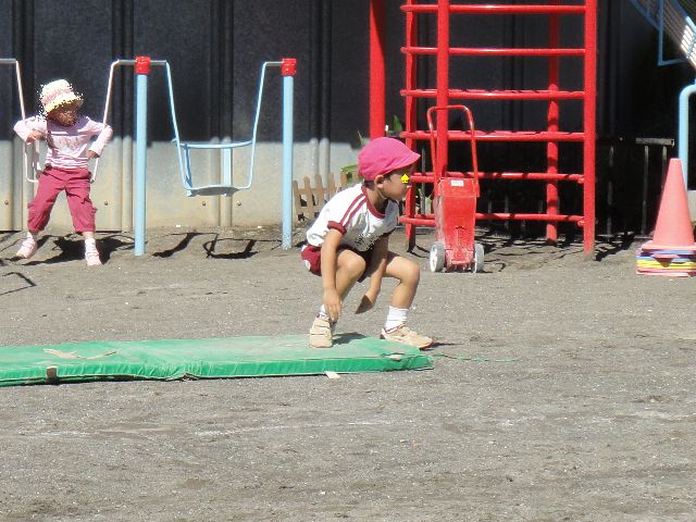 体操教室 習い事 2010.10.11(月) 今日は月曜日なので体操教室があります。《とり》を連れて幼稚園に行ってきました。前半は鉄棒とマット運動でした。《とり》も一生懸命逆上がりの練習をしていました。後半はドッジボールでした。この日が初めてだったようでルールがイマイチ理解できておらず、同じチームでボールを取り合ったり、コートの外へ逃げたりしていました。