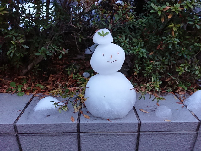 横浜土産 食べ物 2018.01.24(水) 横浜土産を買ってみました。ビスカウトとキットカットです。子供たちが我先に食べていました。《たつ》の会社の近くに雪だるまがありました。気温が低くてまだとけずに残っているようです。