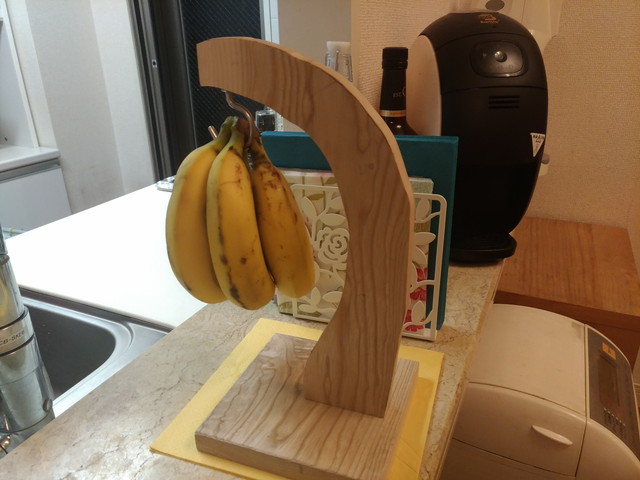 《とり》が技術でバナナスタンドを作ってきました。早速使っています。