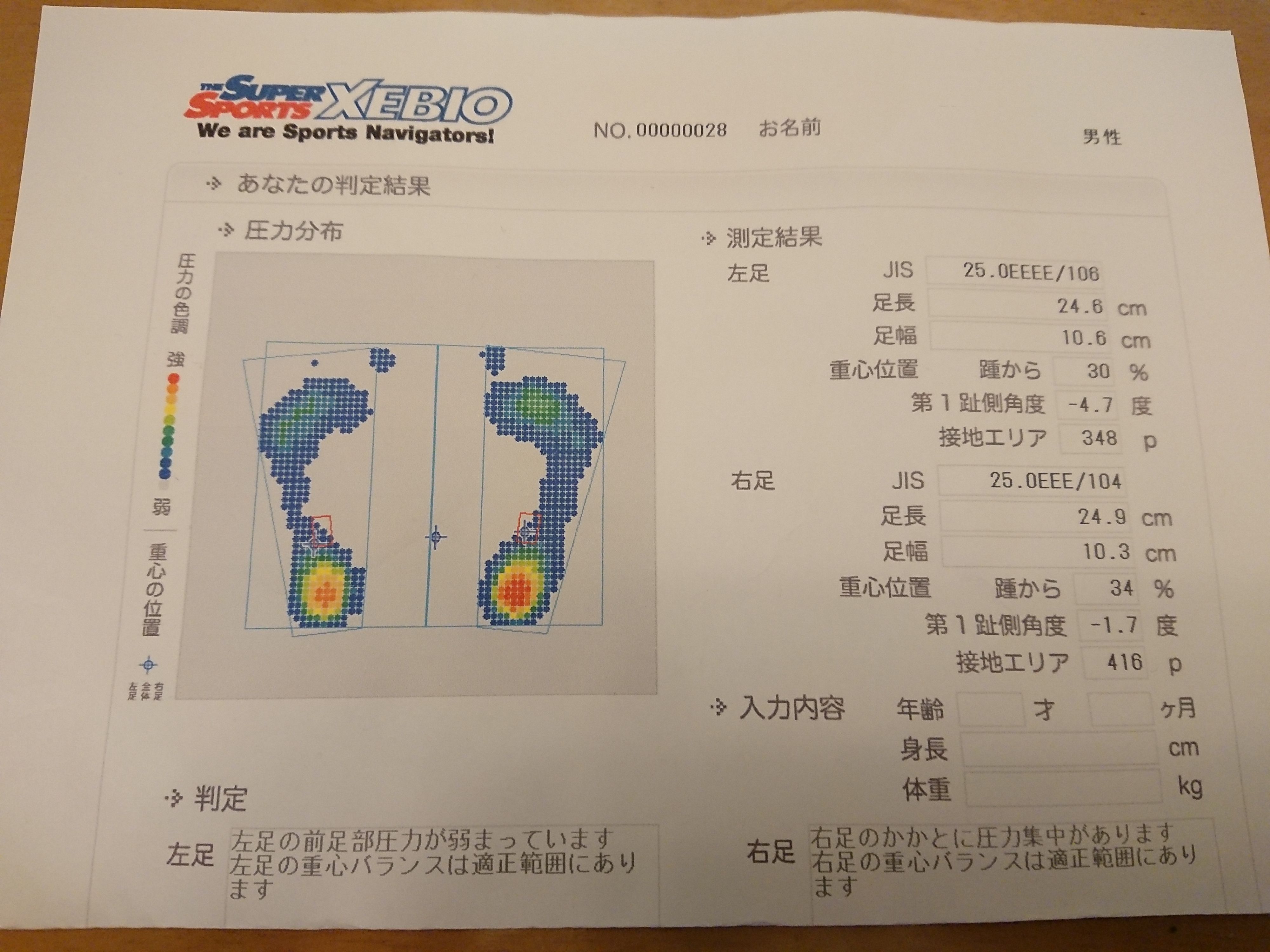《たつ》がスポーツ用品店で足型測定をしてもらいました。重心が少し右側に寄っているようです。左右の足の大きさも微妙に違ってました。