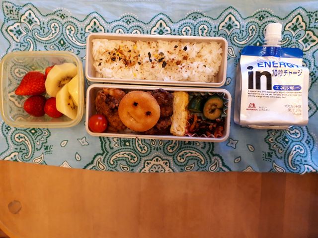 《とり》は水泳部の練習があるので、ゼリー飲料を持たせました。高校生が沖縄のお土産のタルトを2つもくれたようです。