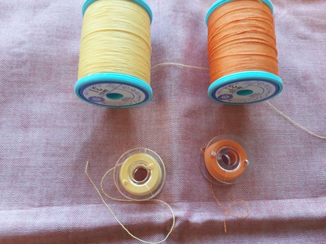 《とり》が運動会で使うはちまきを縫うために糸を買いました。ボビンも足りなくて買い足しました。高校3年生が裁断してくれた布がちゃんと真っ直ぐに裁断してあるので縫いやすかったです。