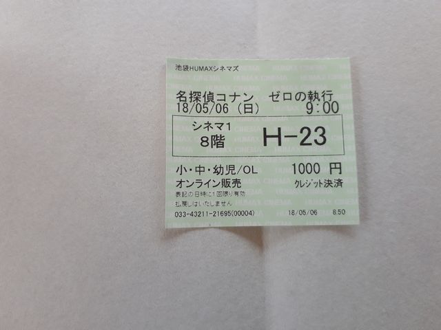 通路前の席を予約していました。映画を観た後は、コナンの話で盛り上がったらしいです。