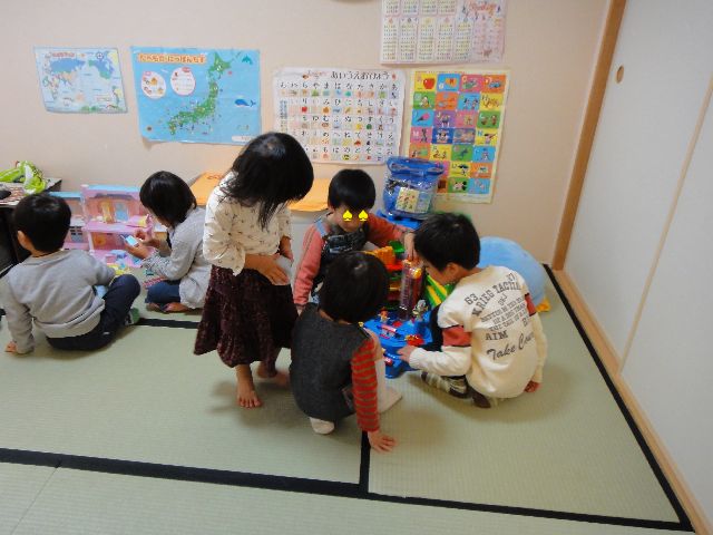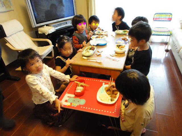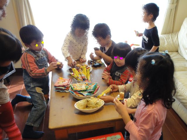 今日は幼稚園も体操教室も入園試験でお休みです。というわけで、《いぬ》のクラスの男の子のお友達の家に遊びに行ってきました。5家族で子供9人です。男の子がドールハウスで遊んでいたりして意外でした。お昼ごはんはお弁当屋さんで調達してくれていました。《とり》も《いぬ》もドラえもんのお弁当を喜んで食べていました。食後はフルーツをいただき、おやつの時間にはロールケーキなど色々おいしいお菓子を出していただき、席を立って戻ると新しい飲み物が用意されていたり、元キャビンアテンダントのママのゲストに対する心配りがすばらしかったと《へび》が感心していました。帰るときには子供たち一人一人におみやげまでもたせてくれました。みんな仲良く遊んでいてとても楽しそうでした。帰りの車の中で「また遊びに行きたい!」とずっと言っていました。。。