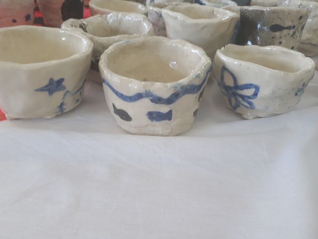 《いぬ》の小学校の参観でした。発表を見てから陶芸の作品を案内してもらいました。お弁当だと知らず、慌てて作りました。