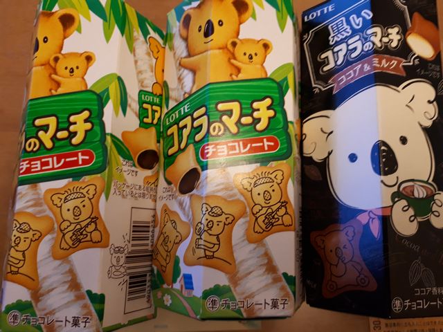 《とり》がお友達と映画に行き、イベントでコアラのマーチを沢山もらってきました。