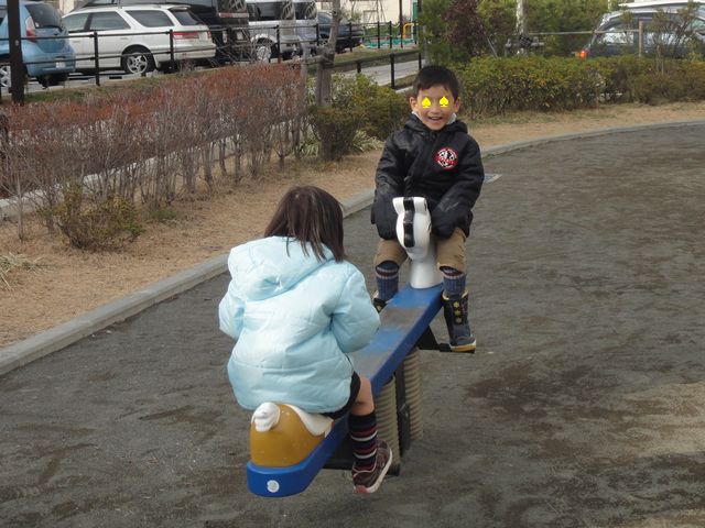 公園遊び 習い事 2010.12.21(火) 午前中は近くの公園で遊びました。誰もいなくて貸し切り状態です。二人でシーソーをしたり滑り台で遊んだりしていました。かくれんぼもしていましたが、《いぬ》は「1、10、もういいかい?」とかなりズルをします。 《へび》の実家から新宮のみかんと佐世保のお米のおすそわけが届きました。《たつ》がコロン好きなので、《へび》の実家から届く荷物には毎回コロンを入れてくれています。