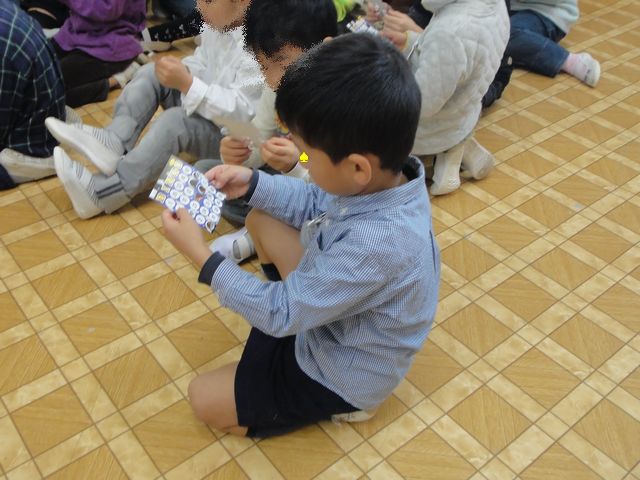《いぬ》も《とり》もクリスマス会です。とはいえ《へび》は《いぬ》のクラスの役員なので《とり》のクラスには参加できません。お友達のママにお願いをして《とり》だけ参加させてもらいました。年少さんはクラスの人数が少ないので、こじんまりと歌やゲームをしておやつを食べて楽しみました。途中で少し抜けて《とり》のクラスへ行くとビンゴ大会で盛り上がっていました。じゃんけんゲームは《とり》が優勝して、イス取りゲームも3位だったそうです。見れなくて残念です。