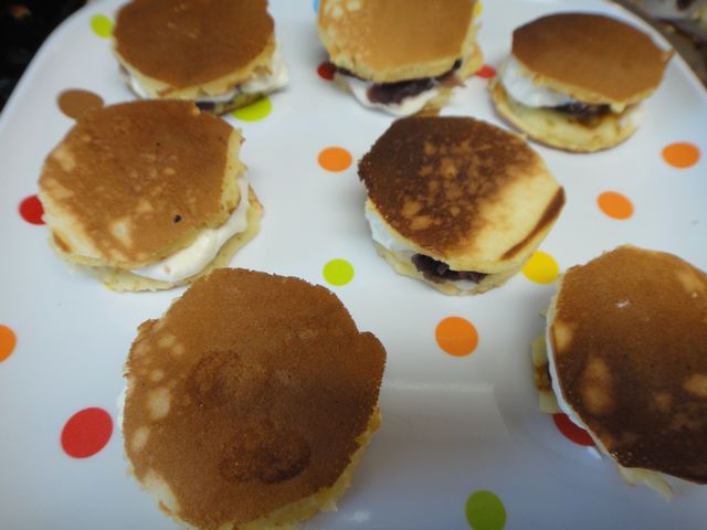 帰宅してからおやつにはドラ焼きを作りました。ちょうどおやつの時間に《へび》のお父さんからラ・フランスが届いたのでさっそく一つ食べました。