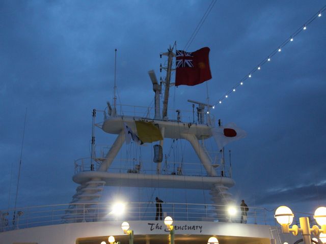 ベイブリッジを通過すると大さん橋が見えてきました。定刻通りの到着です。