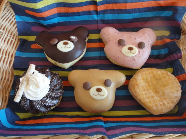 ドーナツ 食べ物 2011.01.05(水) 昨日テレビのコマーシャルでミスドのクマのドーナツを見て、《とり》が買いたいと言うので、買いに行きました。平日100円パスがあるので全て100円で買えます!! 午後からは《いぬ》の希望で公園へ行ってきました。知らない子とお友達になり、みんなで鬼ごっこや砂遊びをしていました。