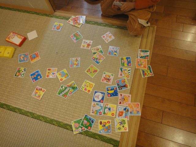 カルタ 子育て 2011.01.13(木) 《とり》と《いぬ》がカルタの練習をしていました。《とり》が読んで二人で取るのですが、《とり》の方が《いぬ》より早く見付けていました。《いぬ》はあまり取ることができず、ものすごく悔しがっていました。