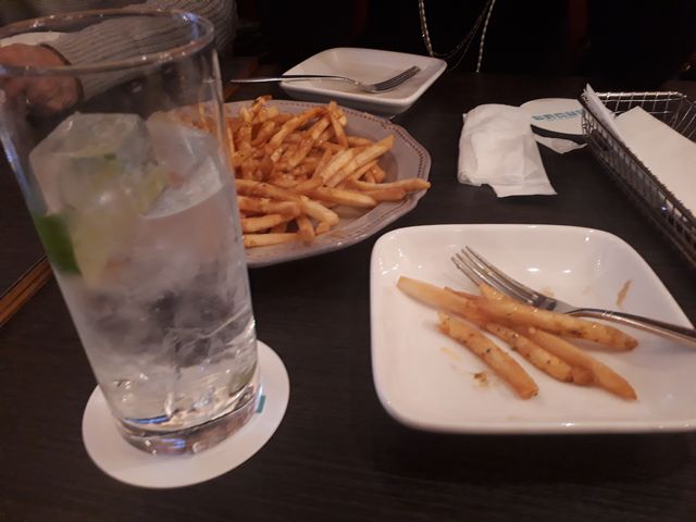《いぬ》が塾に行っている間にお友達と少しだけお茶に行ったらハッピーアワーでお酒が安かったので少し飲みました。