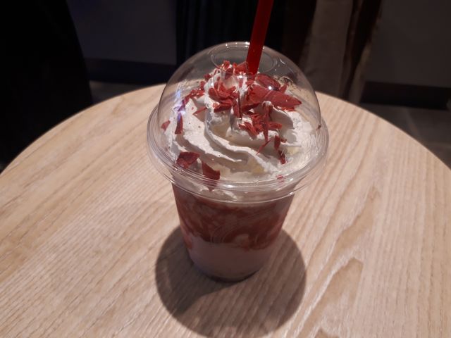 お友達とジェラートのお店に行きあまおうラテを頼みました。暖かい日だったので結構混んでいました。《たつ》は会社でじゃがポックルをもらいました。