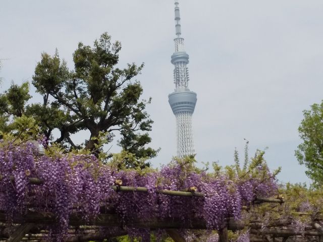 観光 お出かけ 2019.04.22(月) 亀戸天神に藤を観に行きました。きれいに咲いていました。スカイツリーの近くまで歩いてビールを飲んでからランチをして浅草寺でお参りをしてお土産を買って帰宅しました。18000歩位歩きました。