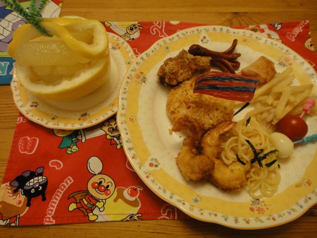 お誕生日 子育て 2011.01.26(水) 《とり》が6歳になりました。自宅での誕生日会は《たつ》も参加できる週末にすることにしたので、今日は《へび》が手作りしたお子様ランチ風の夜ごはんにしました。《とり》と《いぬ》の好きなおかずとごはんでいっぱいです。彩りは悪いですが。。。《とり》は自分で作った旗を立ててとてもうれしそうでした。
