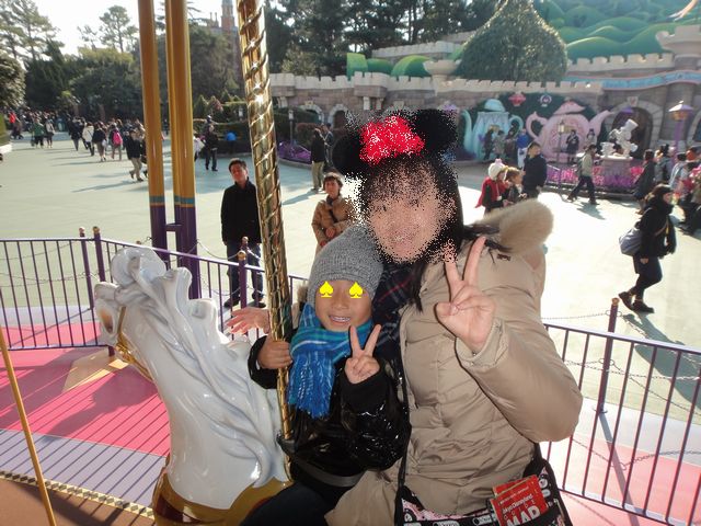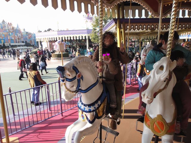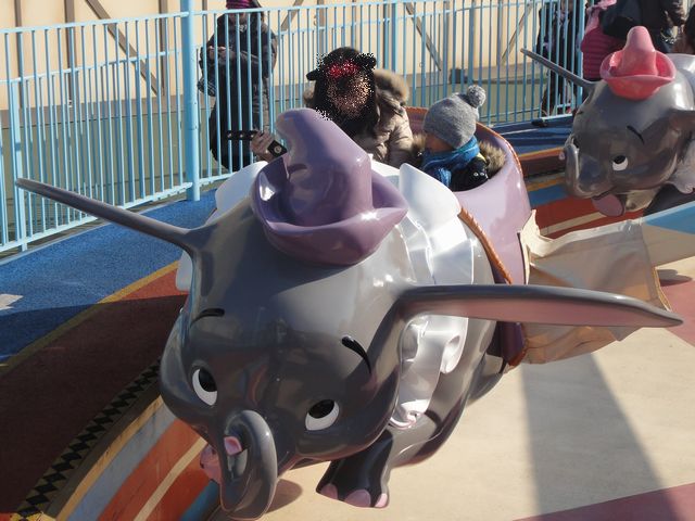 幼稚園が代休だったので《たつ》も会社を休んでディズニーランドに行ってきました。まずはバズに乗りました。意外と《いぬ》と《とり》は点数がいいです。続いて前回は乗れなくて《とり》が楽しみにしていたダンボに乗りました。続いて隣のメリーゴーランドです。《とり》も《いぬ》も大喜びでした。