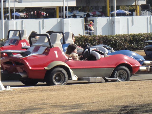 ゴーカートは《とり》も《いぬ》も自分で運転をして楽しんでいました。お昼ごはんを食べてから《とり》がお腹が痛いと言いだしたので、救護室でお医者さんに診てもらいましたが、特に悪いところもなく、しばらくしたら復活しました。《とり》が復活してからモンスターズインクに初めて乗りました。《いぬ》は暗いのを怖がっていました。その後、《とり》・《たつ》・《へび》の3人でスペースマウンテンに挑戦しました。《とり》は動きが速いのが好きで大喜びしていました。