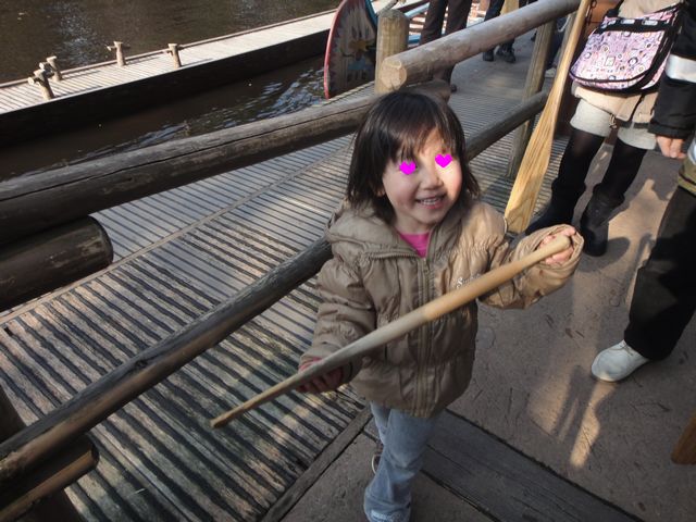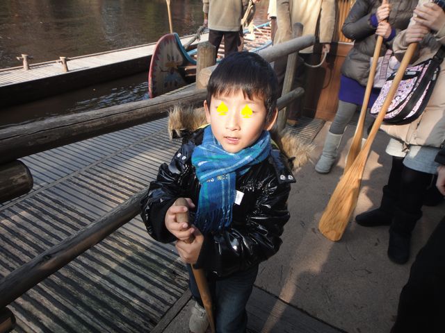 次は《いぬ》も参加できそうなカヌーへ。《とり》は一回り小さなパドルを、《いぬ》はさらに小さなパドルを貸してもらいました。《とり》も《いぬ》も頑張ってカヌーを漕いでいました。それからウェスタンリバー鉄道に乗ったり、ショーを見たり、おやつを食べたりして過ごしました。