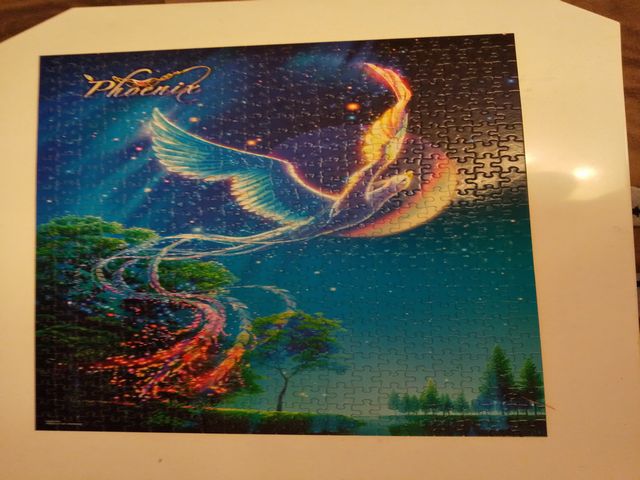 テストが終わって暇な《いぬ》が1000ピースのパズルを仕上げていました。