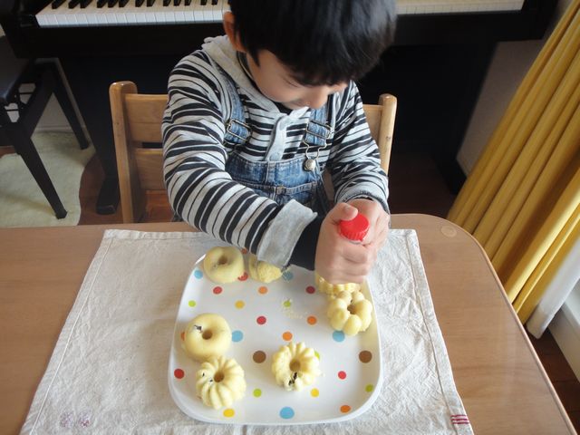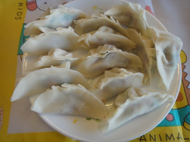《とり》と《いぬ》がおやつのドーナツと夜ごはんの餃子を作るお手伝いをしていました。写真の餃子は《とり》が作ったものですが、なかなかうまくできています。