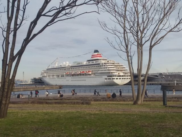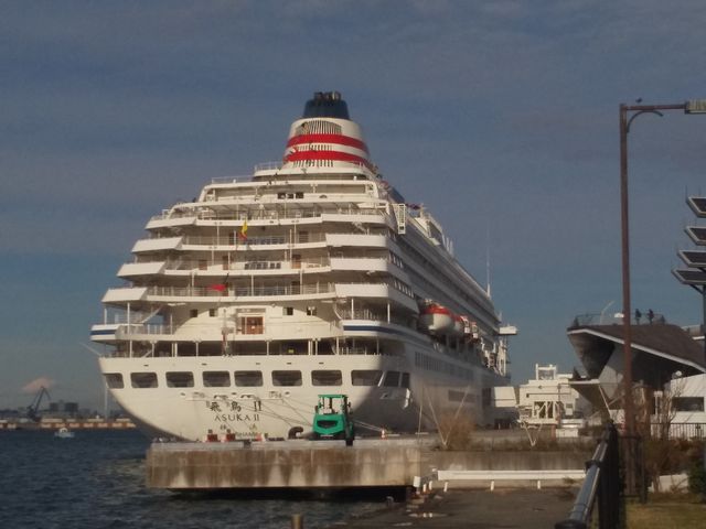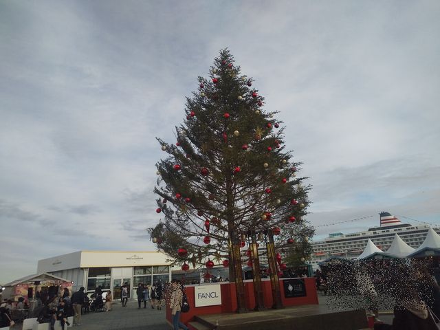 クリスマスマーケット お出かけ 2019.12.24(火) 《いぬ》とクリスマスマーケットに行きました。一度ダイヤモンドプリンセスに乗っているので大桟橋に停まっている飛鳥Ⅱが小さく見えました。 帰りにデパードでケーキを買いました。