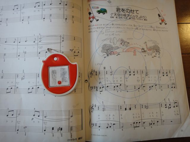 今日はピアノの振替レッスンがありました。天空の城ラピュタにでてくる「君をのせて」という曲は、いつも鼻歌を歌っている《いぬ》に歌の練習の宿題が出ていました。最初はちゃんと歌っていましたが、途中であくびはするし、最後は寝っ転がりながら歌っていました。もう一度立ってちゃんと歌えたらシールをあげるよと言われましたが、そまま寝てしまいました。《とり》が家ではちゃんと歌っていたと先生に説明し、おまけでシールをいただきました。《いぬ》はもらったシールを幼稚園の名札に張って満足そうでした。