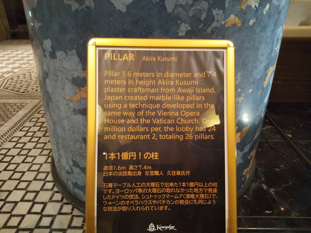 白浜旅行1日目ホテル 旅行 2019.08.27(火) 夜はホテル川久に泊まりました。めちゃくちゃ豪華です。柱は一本一億円って書いてあります。エレベーターホールにはシャンデリアがあり、エレベーターの床は寄木細工でした。 部屋も全室スイートというだけあって広いです。前に住んでた家よりも広いかもしれません。 夜ご飯は王様のビュッフェです。どれも美味しそうで目移りしてしまいます。メインディッシュは伊勢エビ、ローストビーフ、天ぷらでした。食後のデザートもおいしくて、お腹いっぱいになるまで食べました。