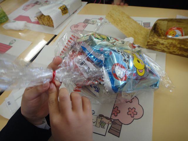 謝恩会 幼稚園 2011.03.04(金) 《とり》のクラスの謝恩会がありました。クラスみんなで歌を歌ったり、ゲームをしたり、一緒にお弁当やおやつを食べたりして、とても楽しい会でした。他の学年の先生やバスの先生も来て下さり、とても盛り上がりました。でも《いぬ》は、自分の分のお菓子やジュースやプレゼントが無いのと、ゲームにも参加できなかったので、やや退屈そうでした。《へび》たちは、謝恩会が終わってお友達とタリーズでお茶をしました。子供たちは寒いのにアイスを食べていました。