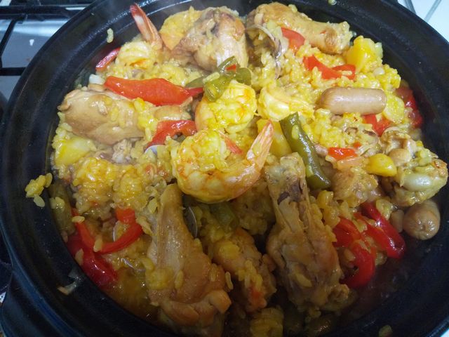 パエリアって フライパンで作るイメージやねんけど 土鍋でもできるねんねΣ(゚Д゚)