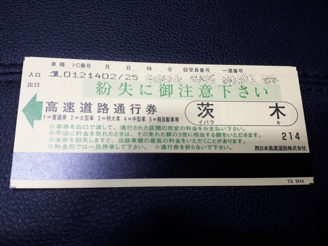 大阪 旅行 2020.02.25(火) 大阪から帰ってきました。今回の行程はこちらです。納車から1週間経たずに1000Km走りました。 まだETCが付いていないので、紙の通行券です。15年ぶりぐらいに見る気がします。夜ご飯は浜松で餃子を食べました。