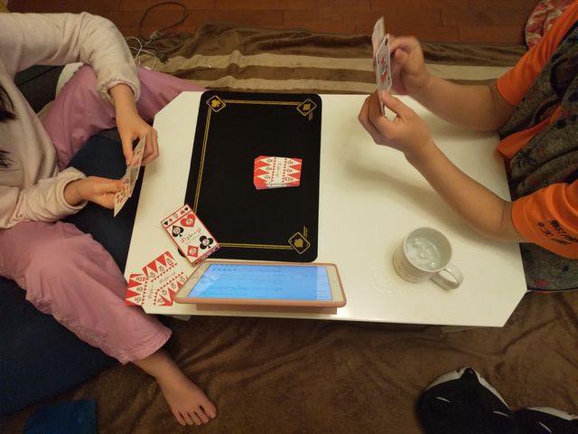 《いぬ》とバスク風チーズケーキを作りました。簡単で美味しいです。最近、兄弟でトランプにはまっているようです。