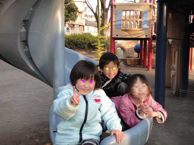 外遊び お友達 2011.04.01(金) 幼稚園のお友達と公園で遊びました。ボール、遊具、かくれんぼ、宝探し、お砂場など色々と楽しんでいました。11時から17時まで目いっぱい遊びました。《いぬ》はお昼ご飯のあと、何度も「今何時?」「おやつ、まだ?」とおやつの心配をしていました。