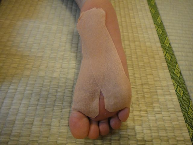 テーピング その他 2011.04.02(土) 《たつ》は再び足を痛めてしまったので、先週から病院に通っています。今日はテーピングをしてもらいました。最近は、節電でエスカレーターが止まっていて、階段を使うことが多いので、つらいです。