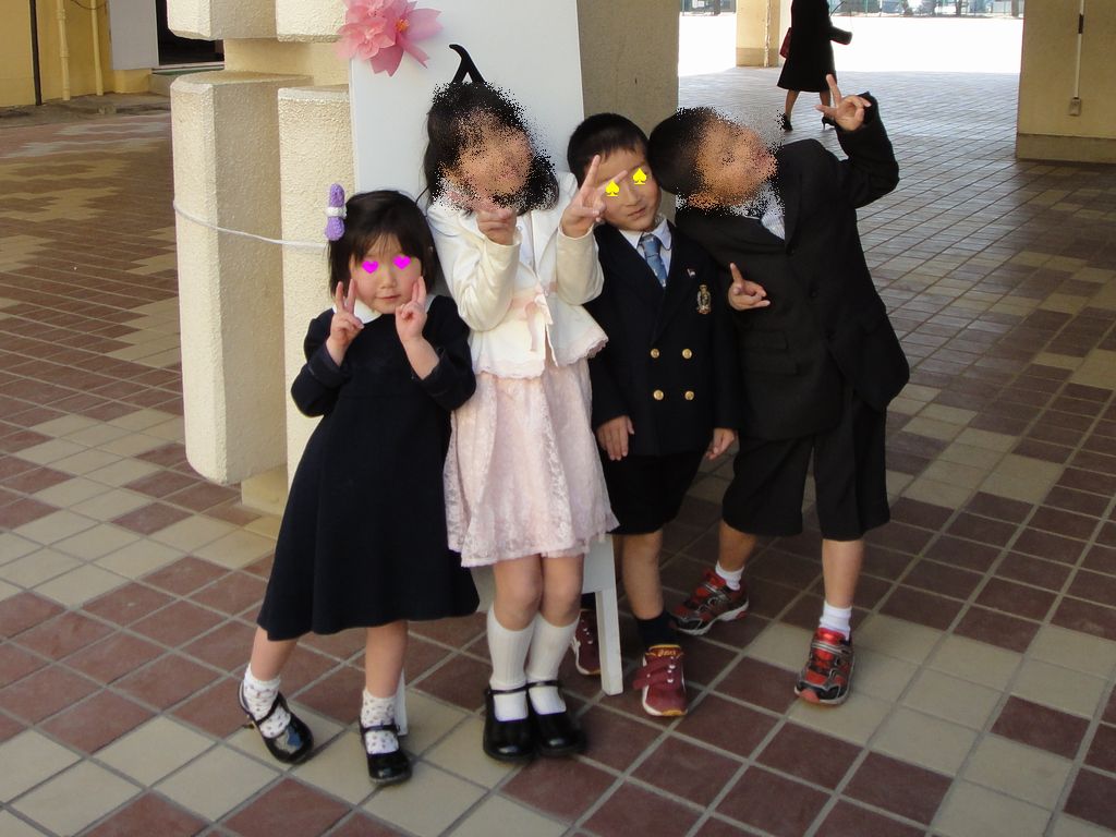 入学式 小学校 2011.04.05(火) 《とり》が週末から体調が悪く、ずっと抗生剤を飲んでいますが、今日は入学式なのでがんばって行きました。まずは教室に入ってお手洗いに行ったり、教科書をもらったりしました。保護者だけ先に体育館に行き、子供たちは6年生と手を繋いで入場してきました。6年生からは歌のプレゼントがありました。1年生から発声の指導を受けているだけあって、とても上手で校歌もハモっていてすばらしかったです。《いぬ》は退屈そうでしたが、お友達のお姉ちゃんがずっと一緒にいてくれました。