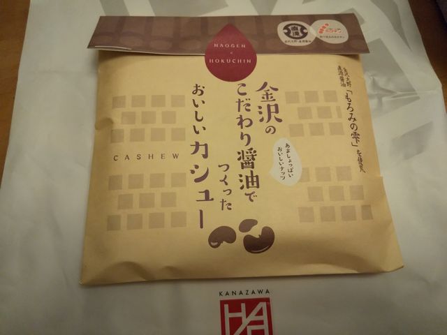 お友達から金沢のお土産をいただきました。醤油の味がして美味しかったです。