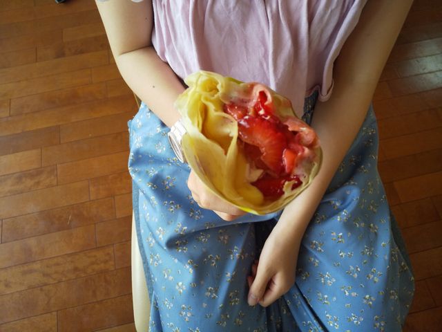 《いぬ》が課題図書を買いに行ったついでにクレープも買ってきて美味しそうに食べていました。