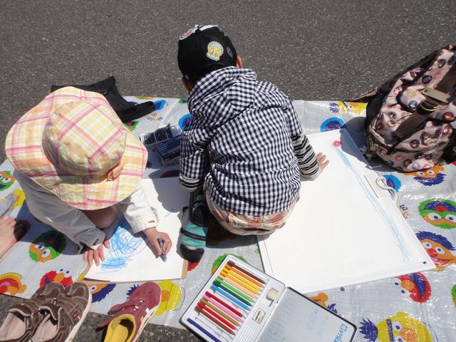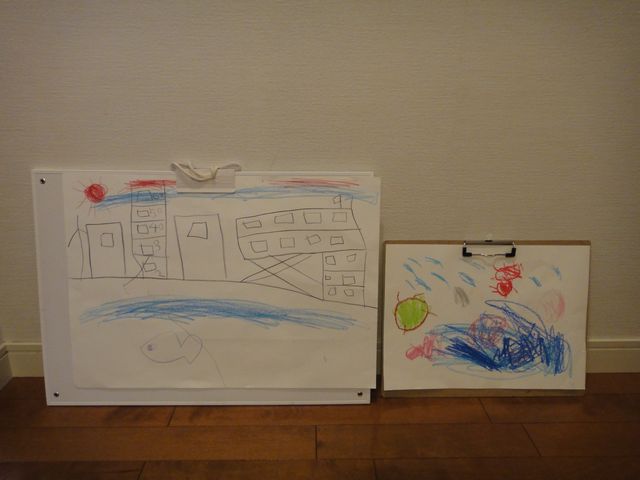 山下公園で行われた写生大会に行ってきました。受付で、小学生の《とり》は四つ切サイズ、《いぬ》は八つ切サイズの専用用紙をもらって《とり》も《いぬ》も初めての写生に挑戦です。見たものを書いてねと教えましたが、景色ではなくて見えるものを組み合わせて好き放題書いていました。書き終わってからは家から持っていったスケッチブックを使って青空の下で何枚もお絵かきを楽しんでいました。